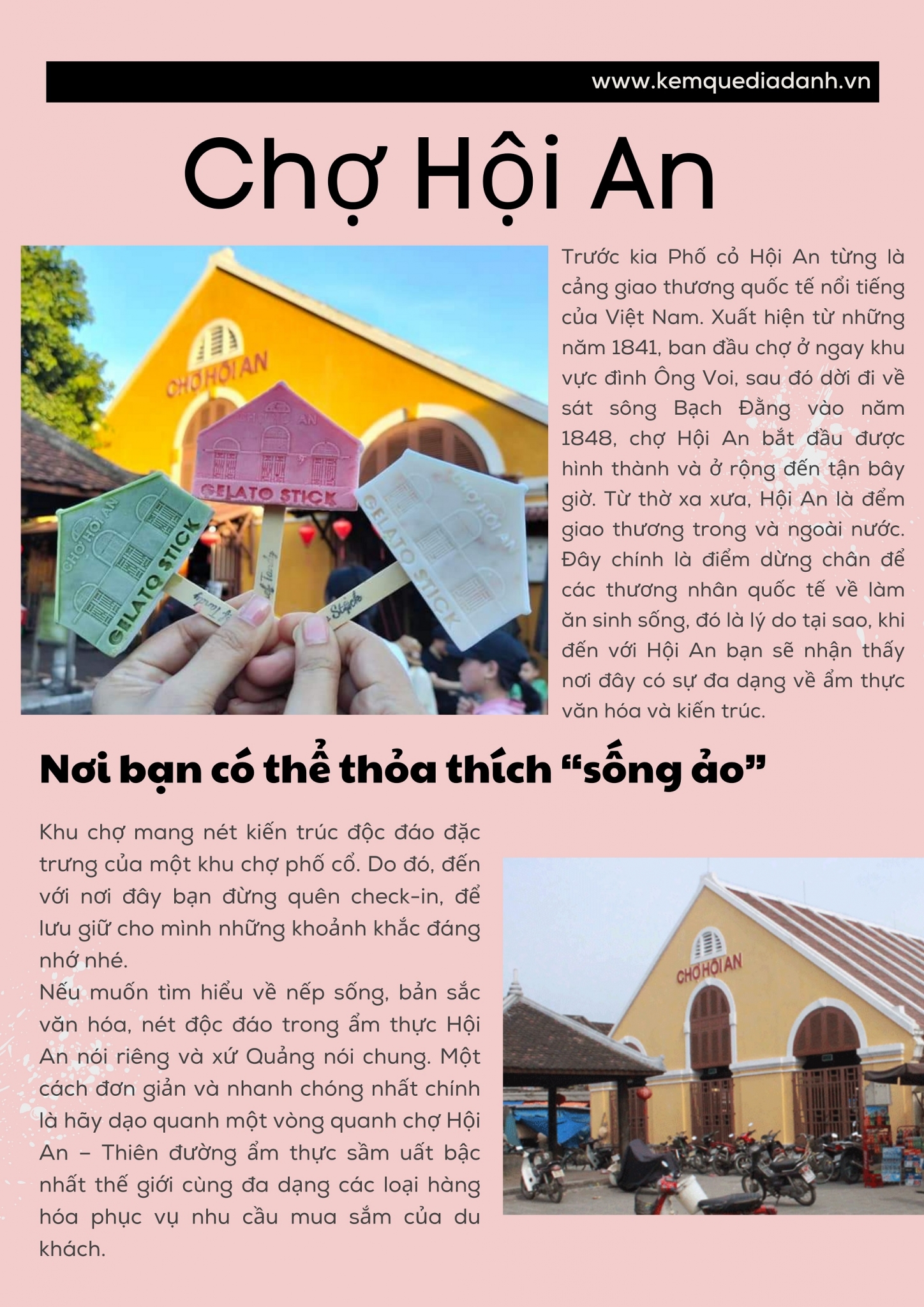 Nếu muốn tìm hiểu về nếp sống, bản sắc văn hóa, nét độc đáo trong ẩm thực Hội An nói riêng và xứ Quảng nói chung. Một cách đơn giản và nhanh chóng nhất chính là hãy dạo quanh một vòng quanh chợ Hội Thiên đường ẩm thực sầm uất bậc nhất thế giới cùng đa dạng các loại hàng hóa phục vụ nhu cầu mua sắm của du khách. An