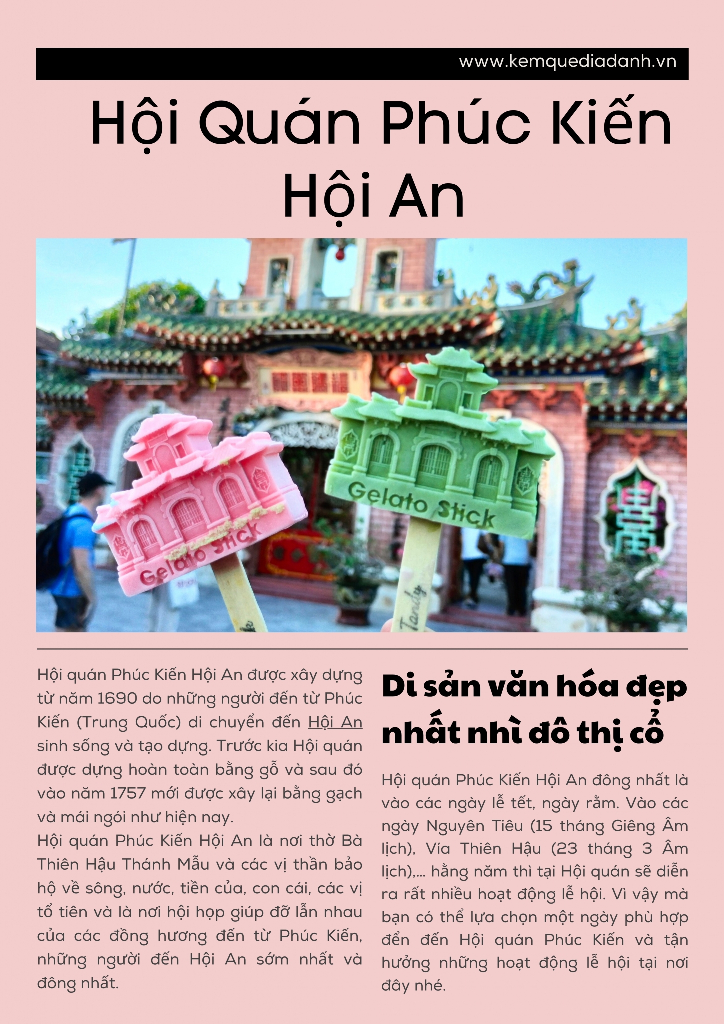 Hội quán Phúc Kiến Hội An được xây dựng từ năm 1690 do những người đến từ Phúc Kiến (Trung Quốc) di chuyển đến Hội An sinh sống và tạo dựng. Trước kia Hội quán được dựng hoàn toàn bằng gỗ và sau đó vào năm 1757 mới được xây lại bằng gạch và mái ngói như hiện nay.