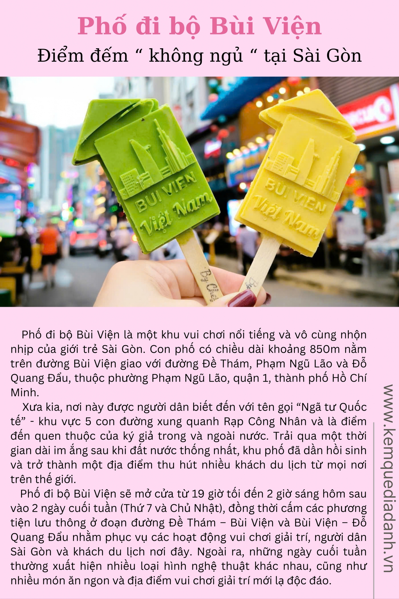 Phố đi bộ Bùi Viện là một khu vui chơi nổi tiếng và vô cùng nhộn nhịp của giới trẻ Sài Gòn. Con phố có chiều dài khoảng 850m nằm trên đường Bùi Viện giao với đường Đề Thám, Phạm Ngũ Lão và Đỗ Quang Đẩu, thuộc phường Phạm Ngũ Lão, quận 1, thành phố Hồ ChíMinh.