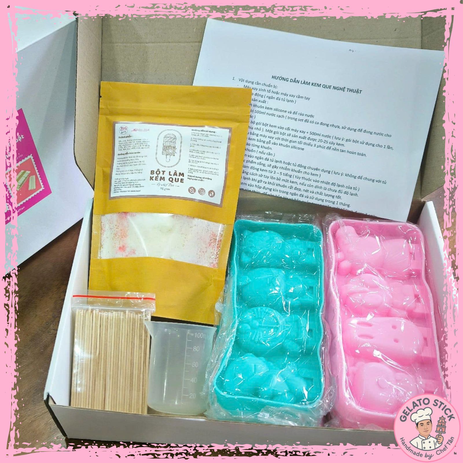 Set làm kem tiện lợi tại nhà là giải pháp hoàn hảo dành cho những ai yêu thích kem que nghệ thuật và muốn tự tay tạo ra những cây kem ngon và đẹp mắt ngay tại không gian nhà của mình. Bộ sản phẩm được thiết kế tiện lợi, đơn giản, dễ sử dụng, phù hợp cho cả người mới bắt đầu lẫn gia đình có trẻ nhỏ.