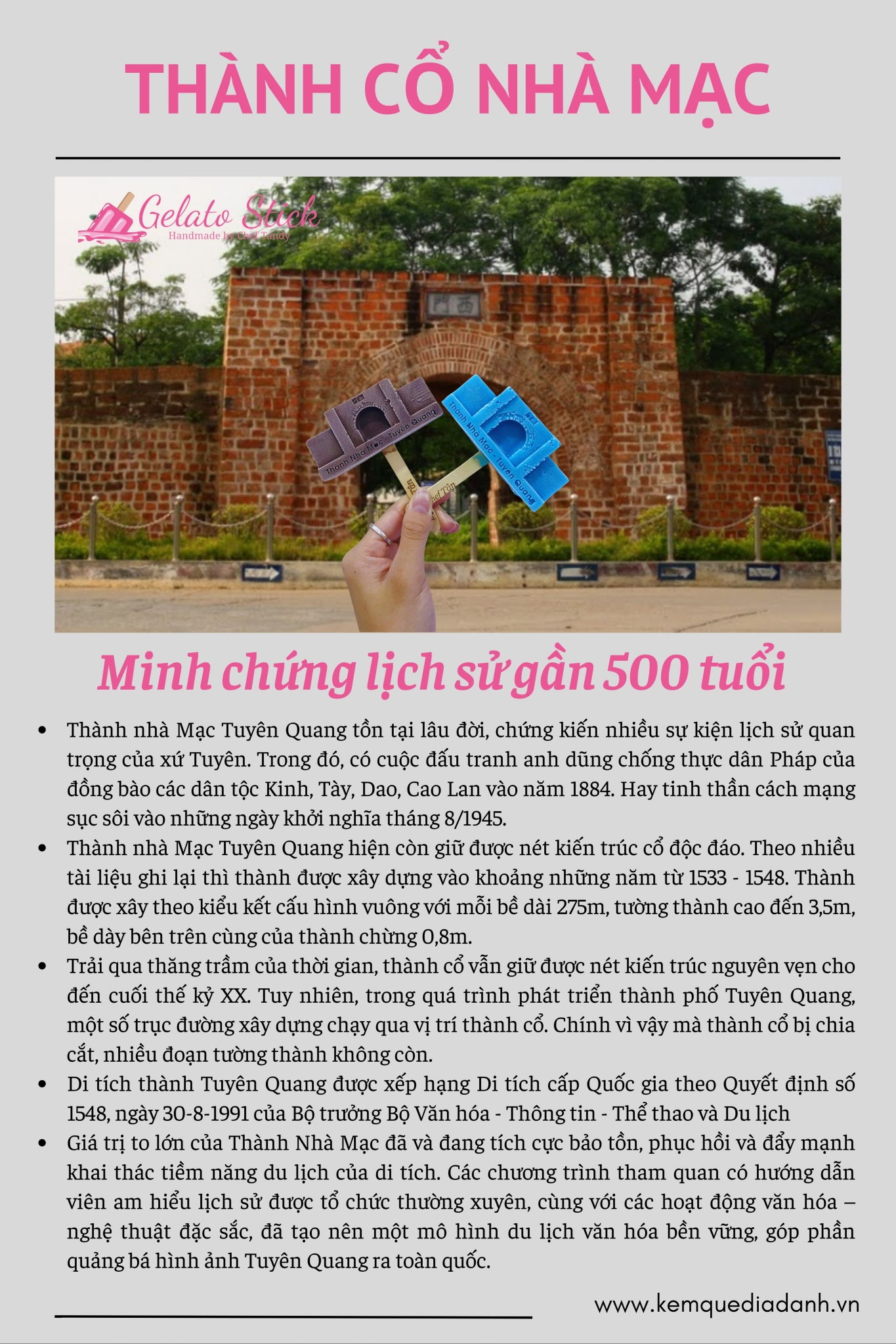 - Thành nhà Mạc Tuyên Quang tồn tại lâu đời, chứng kiến nhiều sự kiện lịch sử quan trọng của xứ Tuyên. Trong đó, có cuộc đấu tranh anh dũng chống thực dân Pháp của đồng bào các dân tộc Kinh, Tày, Dao, Cao Lan vào năm 1884. Hay tinh thần cách mạng sục sôi vào những ngày khởi nghĩa tháng 8/1945.