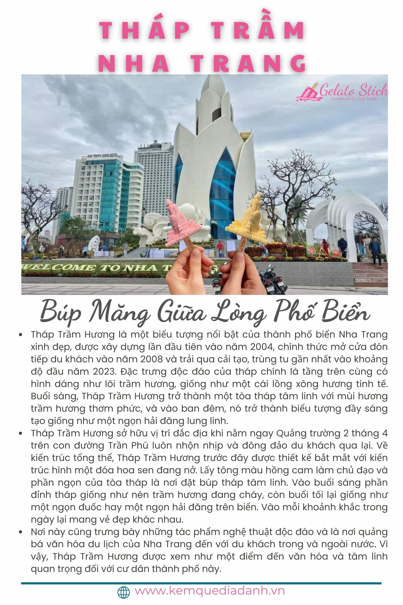 Tháp Trầm Hương là một biểu tượng nổi bật của thành phố biển Nha Trang xinh đẹp, được xây dựng lần đầu tiên vào năm 2004, chính thức mở cửa đón tiếp du khách vào năm 2008 và trải qua cải tạo, trùng tu gần nhất vào khoảng độ đầu năm 2023. Đặc trưng độc đáo của tháp chính là tầng trên cùng có hình dáng như lõi trầm hương, giống như một cái lồng xông hương tinh tế. Buổi sáng, Tháp Trầm Hương trở thành một tòa tháp tâm linh với mùi hương trầm hương thơm phức, và vào ban đêm, nó trở thành biểu tượng đầy sáng tạo giống như một ngọn hải đăng lung linh.
