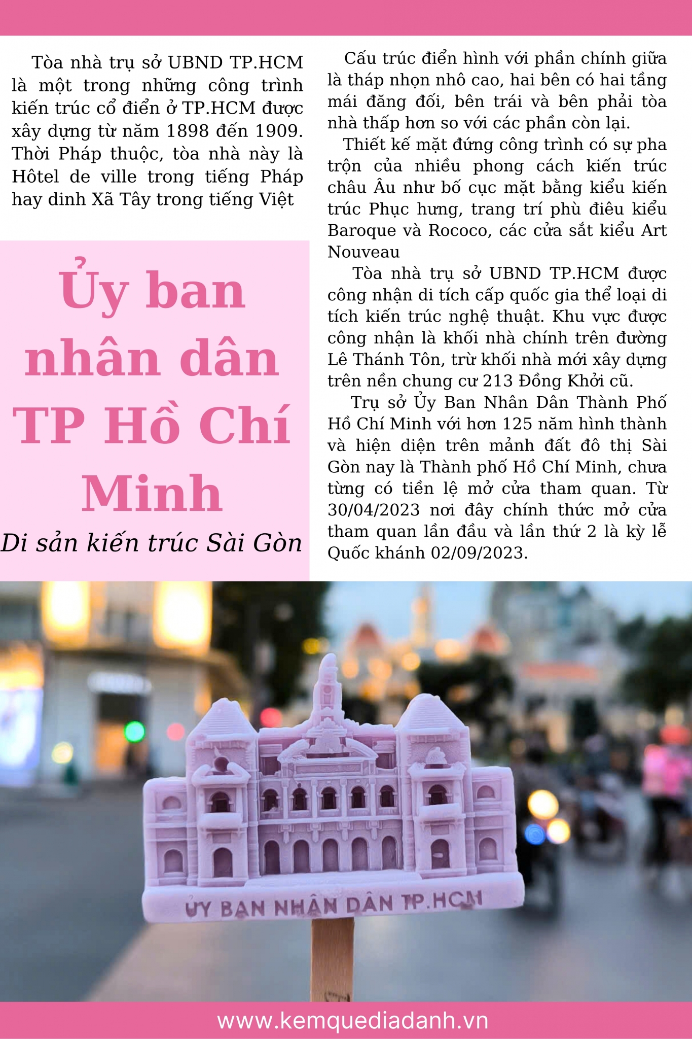 Trụ sở Ủy Ban Nhân Dân Thành Phố Hồ Chí Minh với hơn 125 năm hình thành và hiện diện trên mảnh đất đô thị Sài Gòn nay là Thành phố Hồ Chí Minh, chưa từng có tiền lệ mở cửa tham quan. Từ 30/04/2023 nơi đây chính thức mở cửa tham quan lần đầu và lần thứ 2 là kỳ lễ Quốc khánh 02/09/2023.