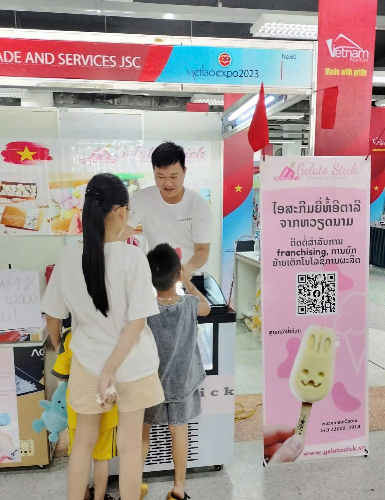 Ngay tại gian hàng Gelato Stick, những cây kem nghệ thuật thủ công đã thu hút đông đảo khách tham quan bởi thiết kế độc đáo, màu sắc bắt mắt và hương vị tự nhiên. Trong khuôn khổ hội chợ, Gelato Stick đã có buổi làm việc và trao đổi với các đối tác tiềm năng là nhà phân phối, nhà hàng, khách sạn tại Viêng Chăn. Những cuộc gặp gỡ này mở ra cơ hội mở rộng thị trường cho sản phẩm kem nghệ thuật Việt Nam tại Lào, đồng thời định hình chiến lược phát triển thương hiệu ra thị trường quốc tế.