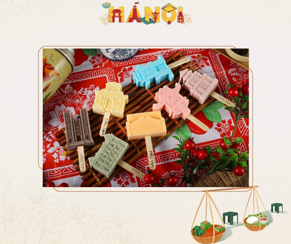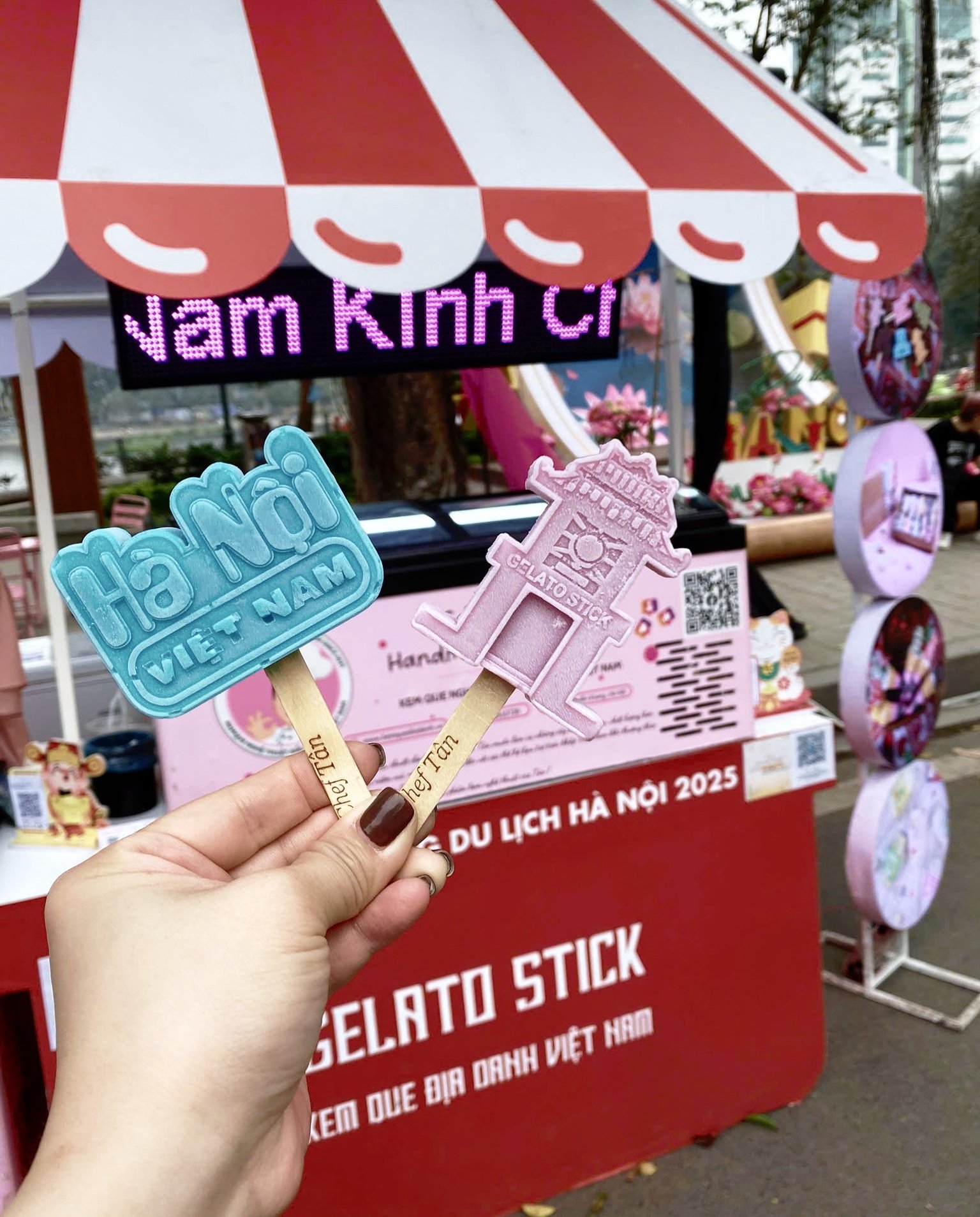 Hãy ghé đến gian hàng số 77 của Gelato Stick để cùng thưởng thức những cây kem địa danh độc đáo, mô phỏng các biểu tượng văn hóa Hà Nội – vừa mát lạnh, vừa ngọt ngào kỷ niệm.