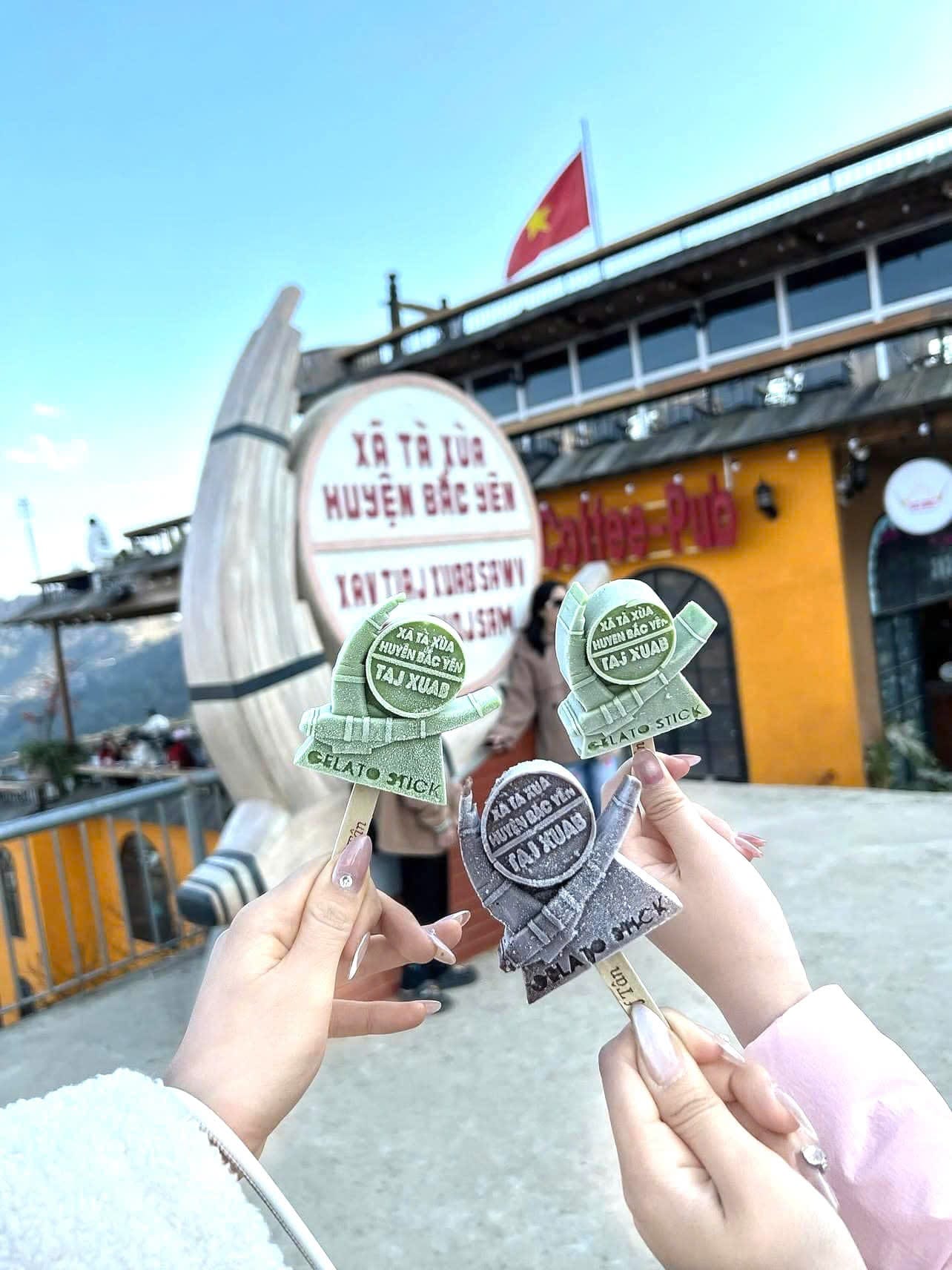 . Giữa những dải mây trắng ôm trọn núi rừng, Tà Xùa luôn khiến bất kỳ ai ghé đến cũng phải lặng người trước vẻ kỳ diệu của thiên nhiên. Gelato Stick tại CỘT MỐC XÃ TÀ XÙA – một điểm dừng chân must-visit ngay trung tâm cung săn mây. Tại đây, bạn có thể vừa sưởi ấm bằng nắng đầu ngày, vừa cầm trên tay những cây kem mang hình biểu tượng Tà Xùa – món “quà lạnh” nhưng lại đem đến cảm giác ấm áp đầy thú vị.