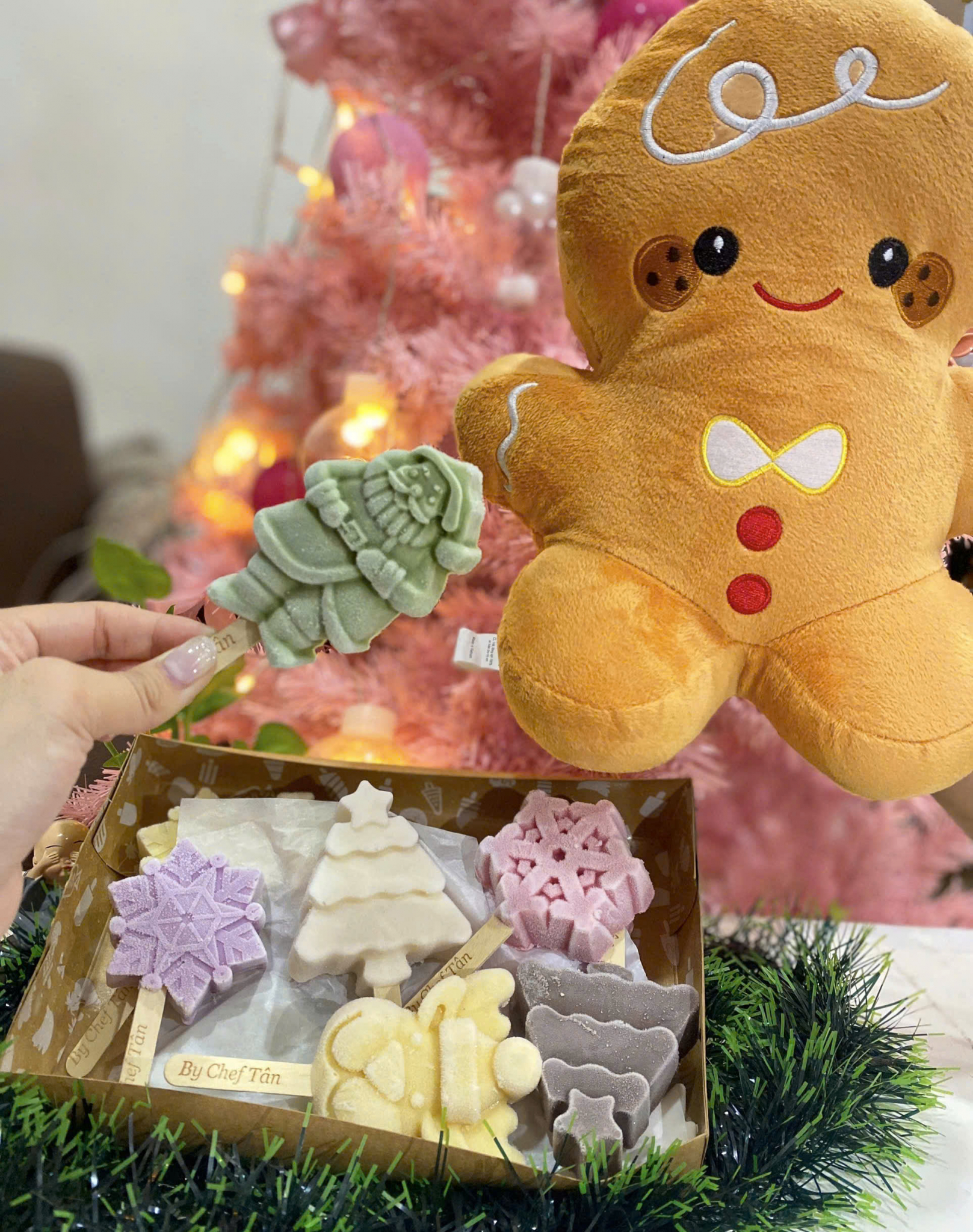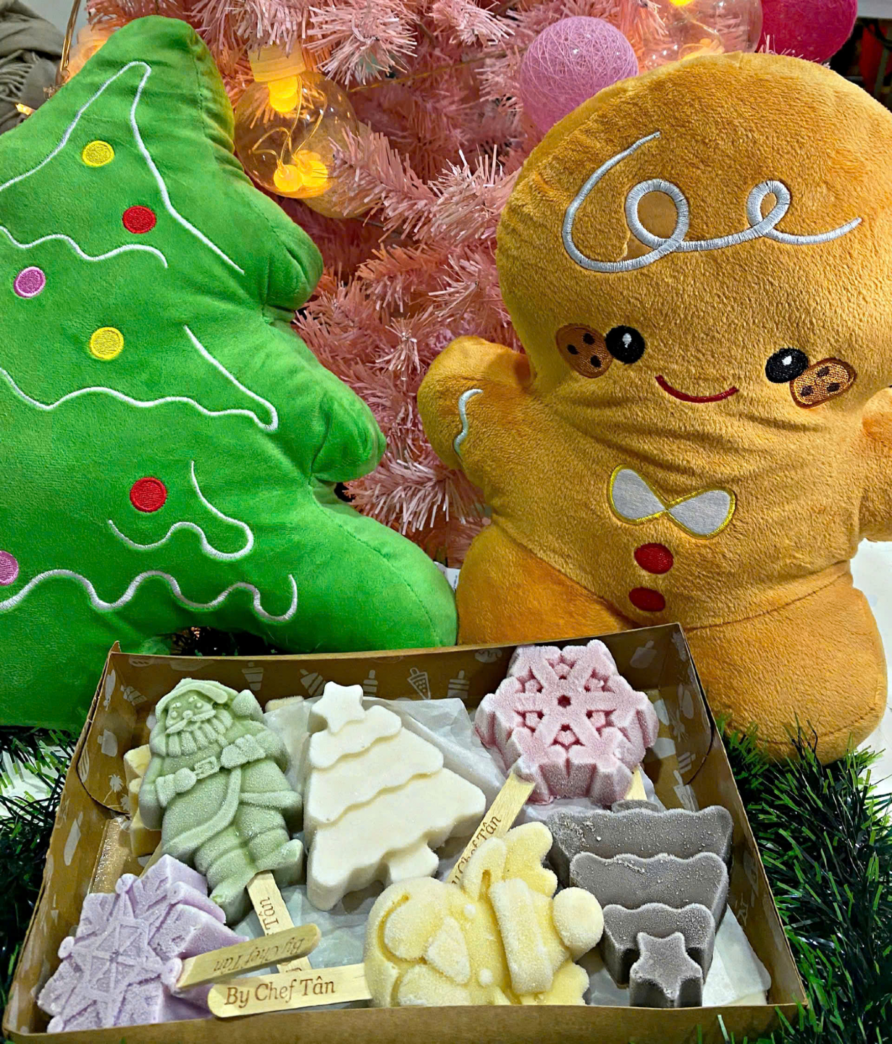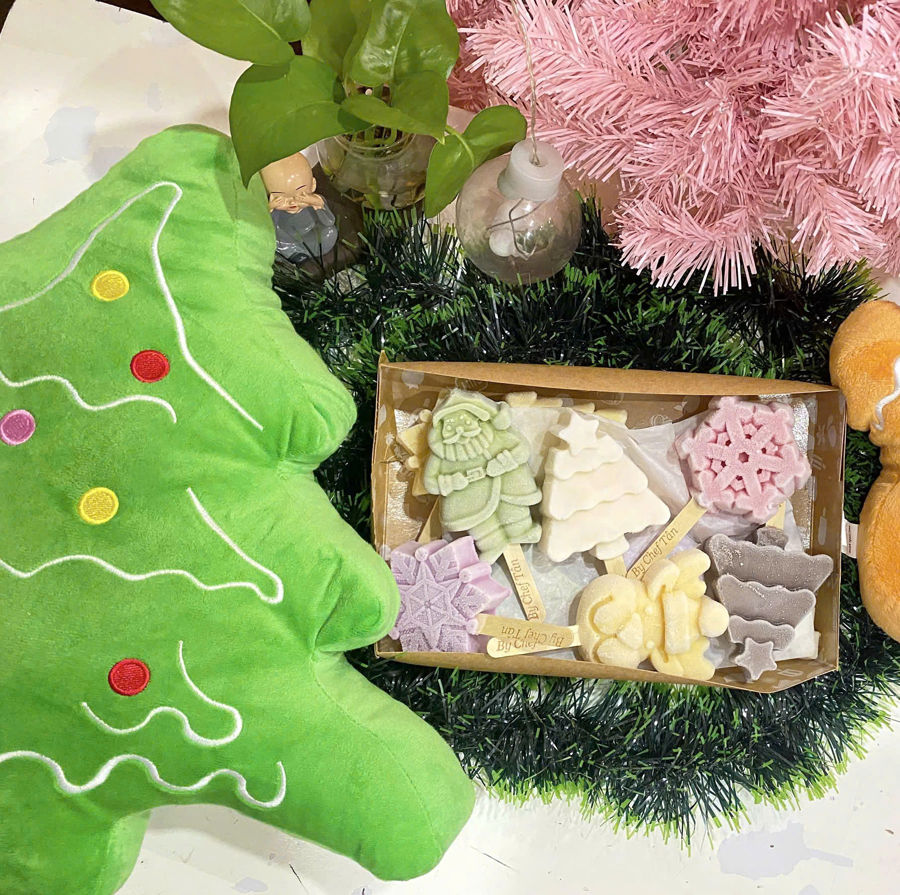 Đặc biệt: Mỗi set kem Noel đều được tặng kèm 1 cây thông Noel bằng bông xinh xắn – nhỏ nhắn, mềm mại, đáng yêu, có thể đặt trên bàn làm việc, góc học tập hay treo trang trí trong nhà. Một món quà nhỏ nhưng đủ làm người nhận mỉm cười.